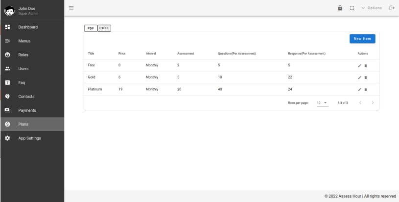 Assess Hour is a single page(SPA) web application / platform for online Assessments, tests, surveys, quizzes and exams. It's best suited for the online evaluations and skills assessment for the educational institutions, companies, corporations and agencies. You can start your own SaaS businees with Assess Hour, also your customers can earn money by selling their own assessments.