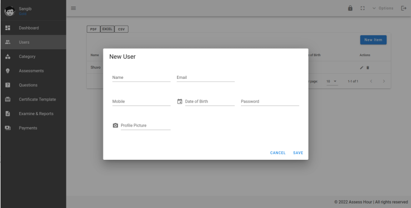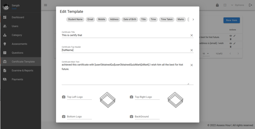 Assess Hour is a single page(SPA) web application / platform for online Assessments, tests, surveys, quizzes and exams. It's best suited for the online evaluations and skills assessment for the educational institutions, companies, corporations and agencies. You can start your own SaaS businees with Assess Hour, also your customers can earn money by selling their own assessments.